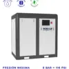 Compresor de tornillo industrial premium de 30 HP (22 kW) de la serie SCT 5000 Flex HE (Alta Eficiencia). Combina un variador de frecuencia (VFD) avanzado con un bloque de compresión optimizado para entregar el mayor caudal de aire por kW consumido. Diseñado para trabajo pesado ininterrumpido (24/7), es la solución definitiva para plantas que buscan llevar su ahorro energético al máximo nivel.