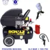 Con un peso de 114 kg, este compresor ofrece la estabilidad necesaria para operaciones continuas sin comprometer la posibilidad de reubicación cuando sea necesario. Su diseño robusto y compacto lo hace ideal para talleres mecánicos, carpinterías, talleres de pintura, servicios automotrices y aplicaciones industriales generales.