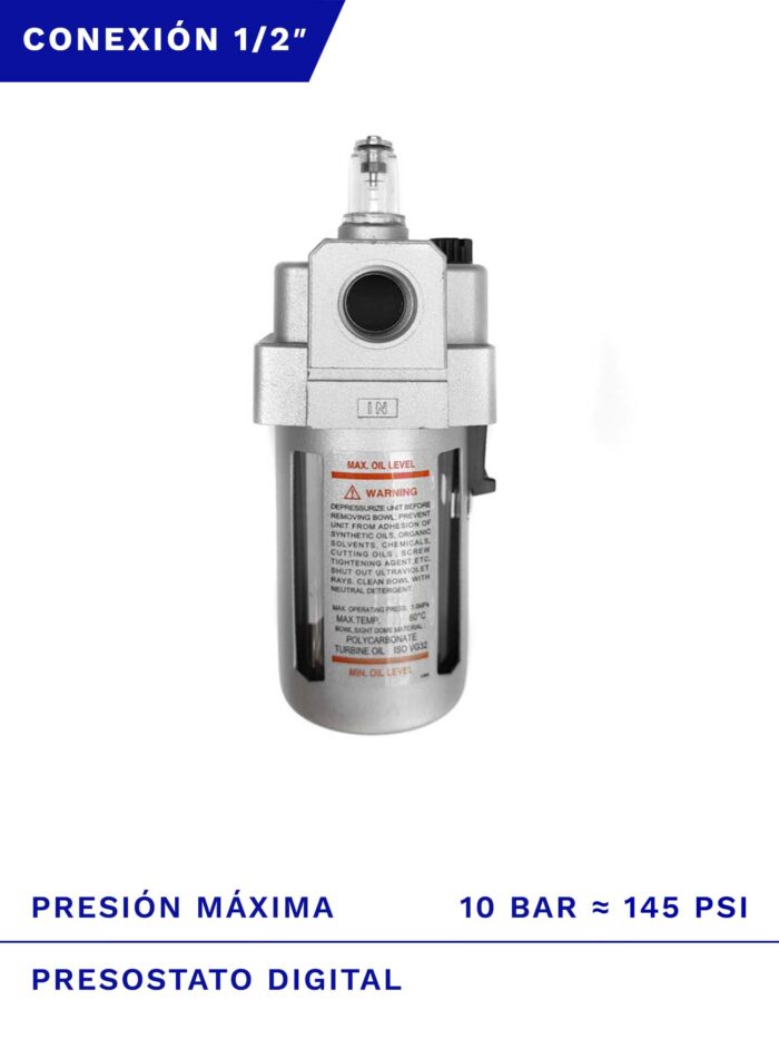 Además, cuenta con una tapa transparente que permite la visualización del nivel de aceite y una válvula de drenaje para la eliminación de aceite y agua acumulados. Utiliza un sistema de lubricación por goteo que proporciona una lubricación constante y precisa. El ajuste del flujo de aceite se puede realizar fácilmente y con precisión.
